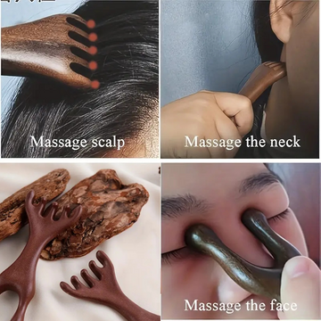 A revolutionary dual-ended massage comb designed to enhance scalp health, stimulate meridians, and provide deep relaxation. Crafted from natural sandalwood, this comb features a unique five-claw design on one end for deep scalp massage, while the opposite two-point tip is perfect for precision pressure therapy on meridian points and facial contours.