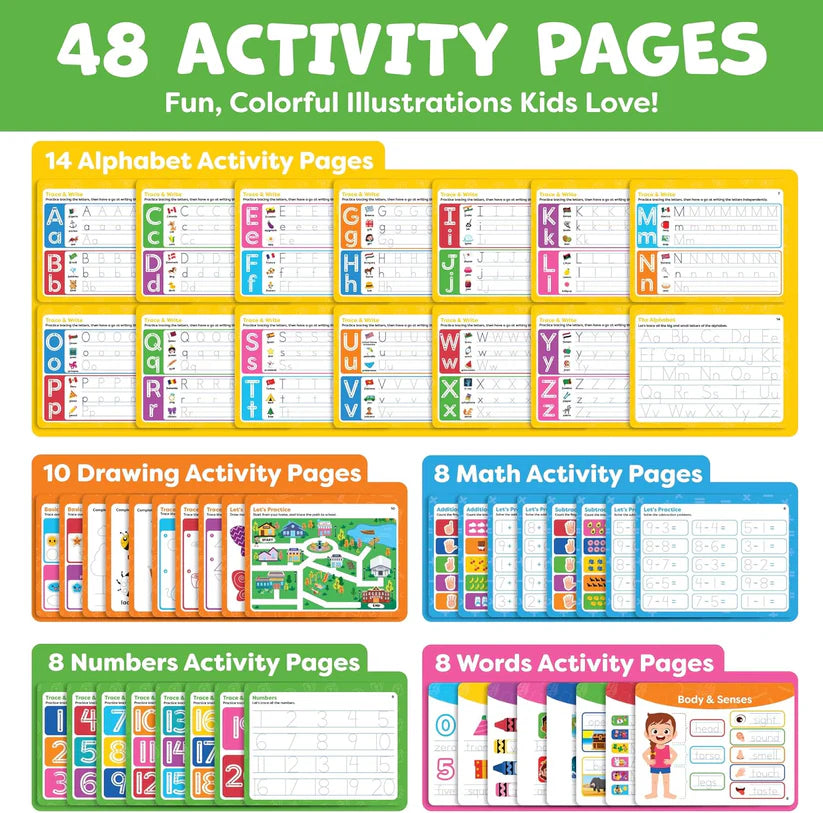 Top-Rated Educational Gift. This activity book for kids ages 3-5 and up blends fun with real skill-building. From Christmas to birthdays or back to school supplies season, it's loved by teachers and parents alike. Ideal as a writing practice tool for kids age 5-7, it sparks creative play while developing handwriting and hand-eye coordination. Add to Cart now to support joyful learning and early literacy mastery!