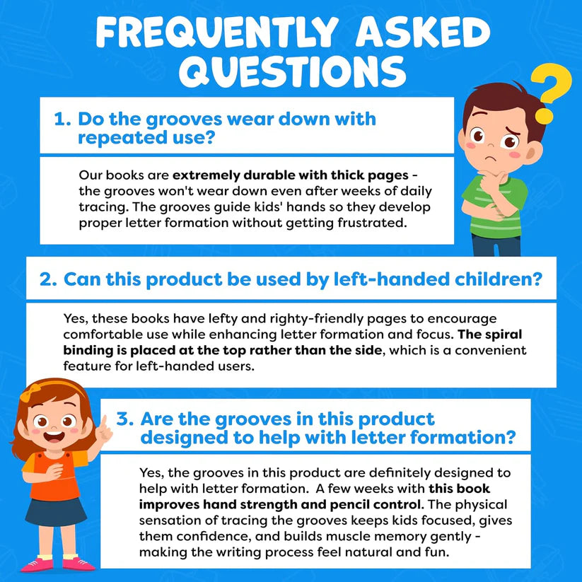 Designed for Creativity and Durability. Our grooved writing books for kids 3-5 feature rounded edges, vivid imagery, and spiral binding. Lefty and righty-friendly pages encourage comfortable use while enhancing letter formation and focus. A great educational toy for classrooms, therapy settings, or rainy-day play - perfect STEM learning support and gift for boys toys age 4-6 or girls 5-7.
