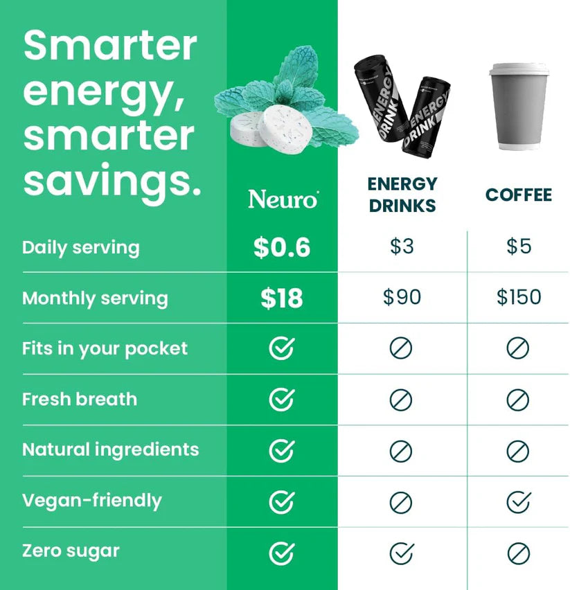 SUGAR FREE + ASPARTAME FREE– Neuro Energy and Focus supports productivity without the artificial forms of energy in drinks or a handful of pills, enjoy this energy boosting treat, guilt free!
